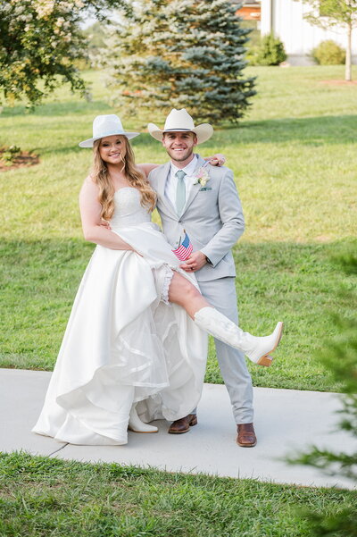 Following cocktail hour, Kiersten and Jordan were introduced to their reception as “Mr. and Mrs. Willsie” in cowboy boots and matching hats!